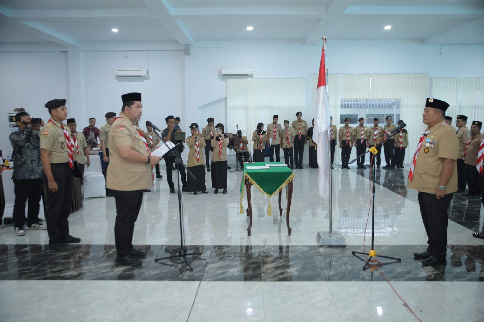 TNews, ASAHAN – Ketua Kwartir Daerah (Ka Kwarda) Gerakan Pramuka Sumatera Utara Dr. Dicky Anugerah, S.Sos., M.SP. secara resmi mengukuhkan Bupati Asahan Taufik Zainal Abidin, S.Sos., M.Si. sebagai Ketua Majelis Pembimbing Kwartir Cabang (Kamabicab) Gerakan Pramuka Kabupaten Asahan Masa Bakti 2024–2029, Kamis (18/12/2025).