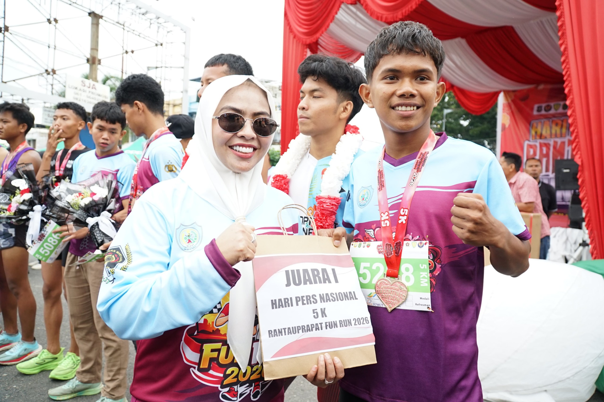 Acara yang berlangsung hangat tersebut diisi dengan berbagai rangkaian kegiatan, mulai dari senam sehat, pembagian dorr preez hingga perlombaan fun run yang digelar di bundaran Simpang Enam Rantauprapat Selasa 17/2/2026.
