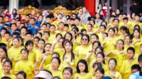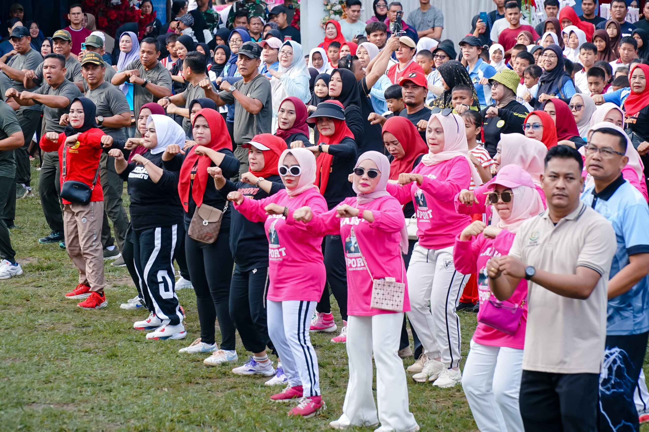 TNews, Labuhanbatu- Ribuan warga memadati Lapangan Ika Bina Rantauprapat, Kecamatan Rantau Utara, Minggu (19/10) pagi, untuk mengikuti senam bersama Bupati Labuhanbatu, dr. Hj. Maya Hasmita, Sp.OG., MKM.