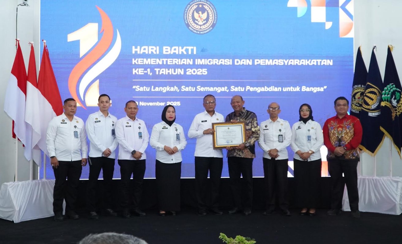 Kakanwil Ditjen Imigrasi Sumut Teodorus Simarmata membacakan amanat Menteri Imigrasi dan Kemasyarakatan RI, Agus Andrianto, yang menekankan bahwa Hari Bhakti ke-1 menjadi tonggak sejarah kementerian baru dalam memperkuat tata kelola, mempercepat layanan publik, serta meningkatkan pembinaan warga binaan. Prosesi pemotongan tumpeng menutup kegiatan, disusul sesi foto bersama seluruh tamu undangan, menandai berakhirnya peringatan Hari Bhakti dengan penuh kebersamaan.*