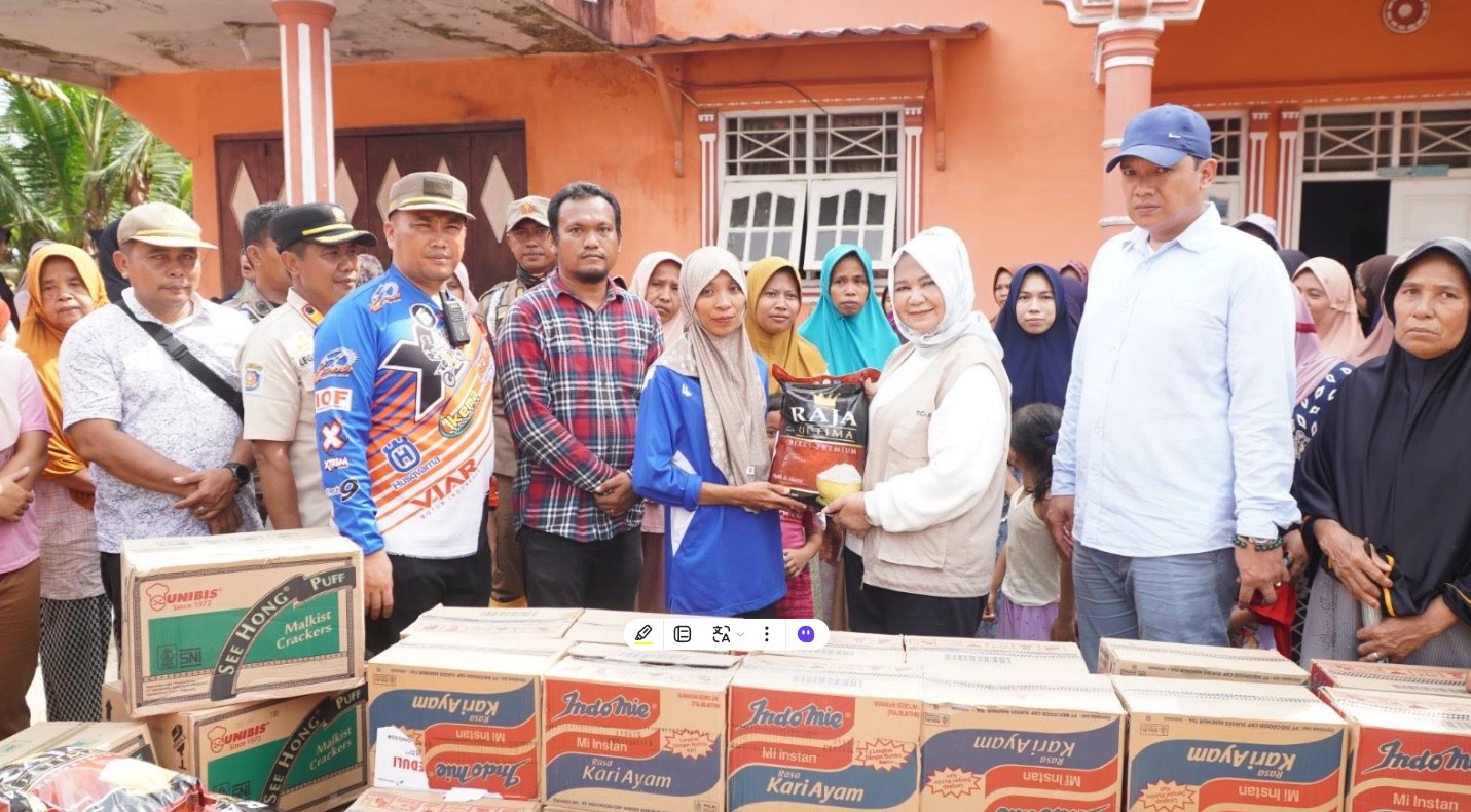 Bantuan yang disalurkan mencakup 100 goni beras 5 kg, 25 kotak minyak makan, 100 kotak mie instan, 5 kotak biskuit, 3 kotak sarden, 3 kotak popok bayi, 20 kotak air mineral, serta 10 papan telur. Bantuan diterima langsung oleh Kepala Desa Salahaji, Lestari, SPd, bersama Camat Pematang Jaya, Dian Kurniawan Siregar, S.STP, disaksikan ratusan warga.