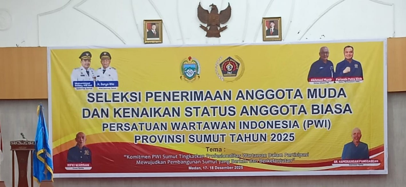 TNews, MEDAN — Sekitar 200 wartawan dari berbagai kabupaten dan kota di Sumatera Utara mengikuti seleksi penerimaan anggota muda serta kenaikan status anggota biasa Persatuan Wartawan Indonesia (PWI) Sumut. Seleksi berlangsung di Hotel Madani, Jalan Sisingamangaraja, Kota Medan, Sabtu, 20 Desember 2025.