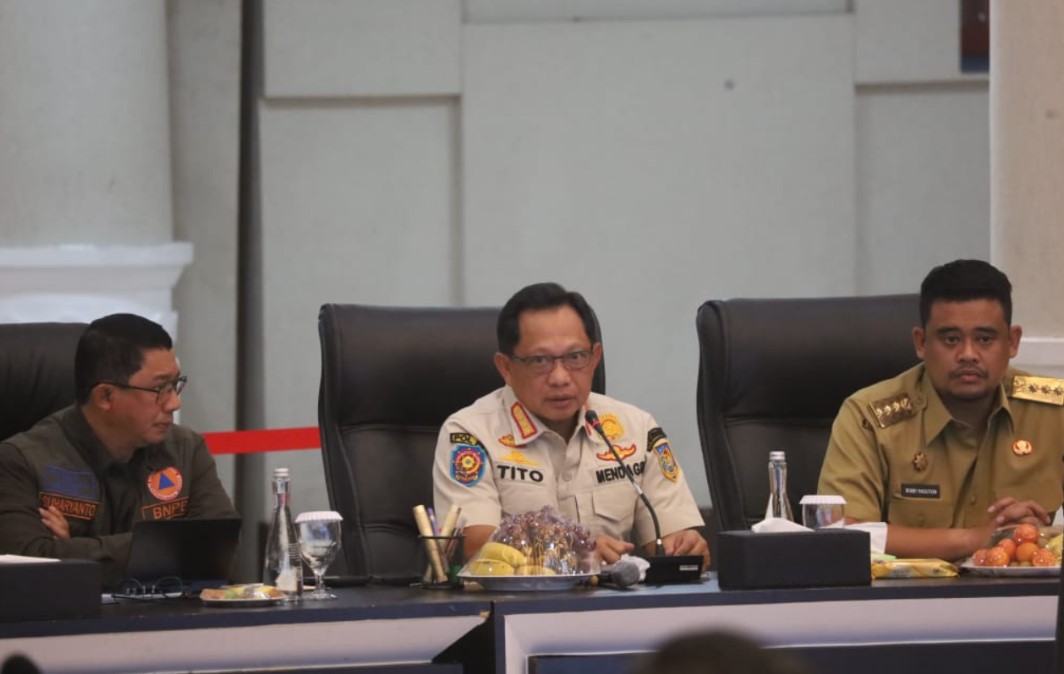 Rakor yang berlangsung di Aula Raja Inal Siregar, Senin (12/1/2025), dipimpin langsung Menteri Dalam Negeri Tito Karnavian bersama Kepala BNPB Letjen TNI Suharyanto. Sejumlah kepala daerah se-Sumatera Utara tampak mengikuti pembahasan yang menitikberatkan pada percepatan pemulihan infrastruktur dan pemenuhan kebutuhan dasar warga terdampak.