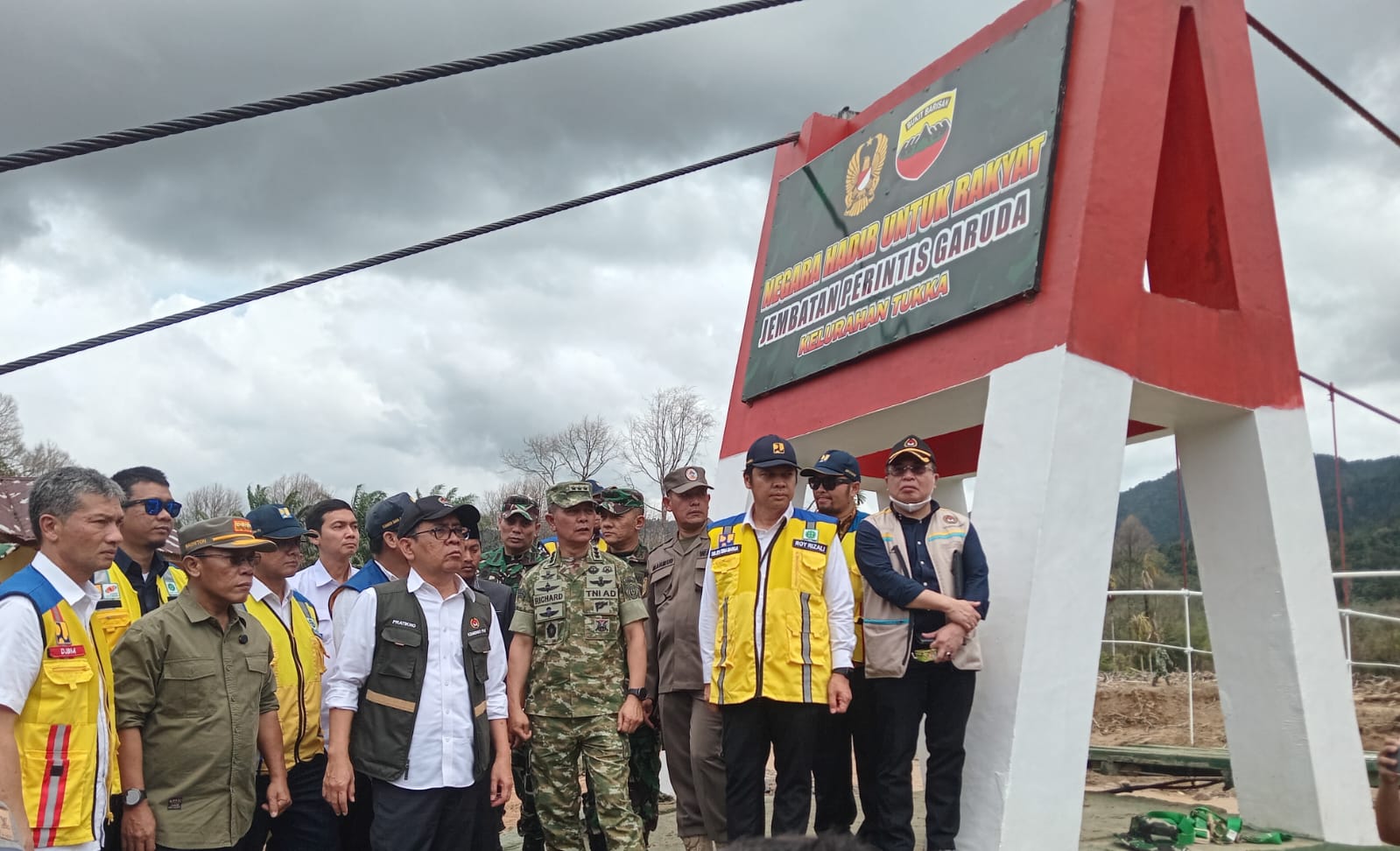 TNews, TAPTENG – Kepala Staf Umum Tentara Nasional Indonesia (Kasum TNI) Letjen TNI Richard Tampubolon bersama Menteri Koordinator Pembangunan Manusia dan Kebudayaan Republik Indonesia (Menko PMK RI) Pratikno melakukan kunjungan kerja (kunker) meninjau pembangunan Jembatan Perintis Garuda yang pengerjaannya dilakukan oleh TNI di Kecamatan Tukka, Kabupaten Tapanuli Tengah (Tapteng), Jumat (13/2/2026).